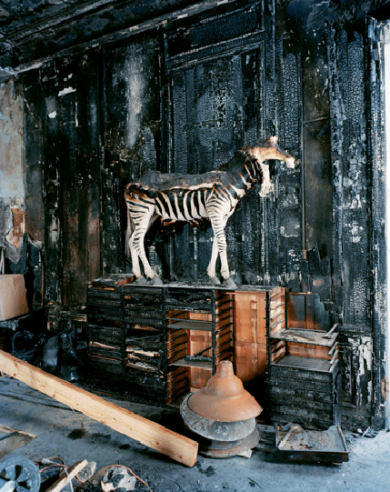 Stuffed, mounted and classified, the specimens of a wide range of species conserved by this world-renowned institution were at best singed and at worst reduced to ashes. That which Man and science had taken from the natural cycle of life and death and fixed forever for our wide-eyed pleasure was partially brought back to its original destiny: the fading and disappearance that awaits any creature. Time had been made to stand still, and nature had reclaimed its rights.