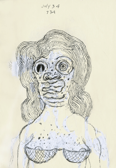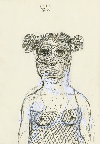 Lawrence Carroll draws at night just before falling asleep, to help him dream.