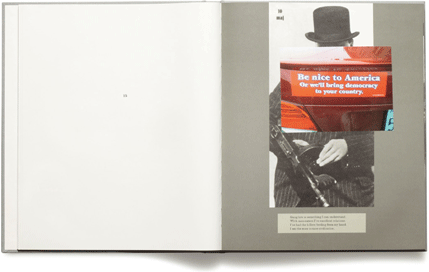 War Primer 2 originated as a limited edition book that physically inhabits the pages of Bertolt Brecht's 1955 publication War Primer, a collection of Brecht's newspaper clippings, each accompanied by a four-line poem. The title deliberately recalls the textbooks used to teach elementary school children how to read; Brecht's book is a practical manual, demonstrating how to "read" or "translate" press photographs. Where the original was concerned with images of the Second World War, War Primer 2 updates Brecht's piece with found images of conflict generated by both sides of the "War on Terror".